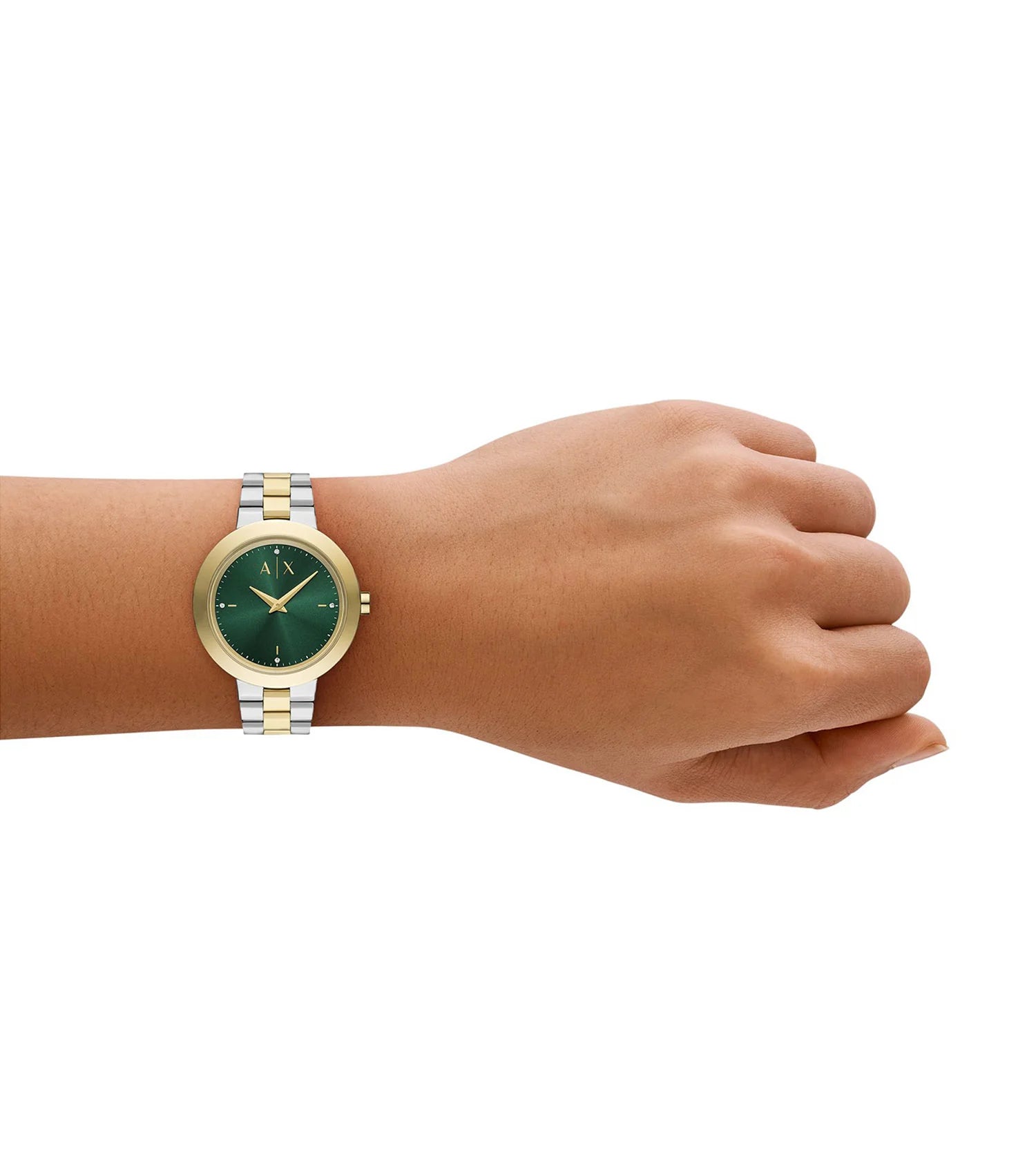 - Two-Tone, stainless steel bracelet.